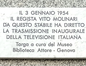IL 3 GENNAIO 1954 IL REGISTA VITO MOLINARI DA QUESTO STABILE HA DIRETTO LA TRASMISSIONE INAUGURALE DELLA TELEVISIONE ITALIANA
