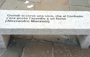 Questa e altre 3 panchine scritte sono state messe nella piazza a dicembre 2025, al termine dei lavori di risistemazione del selciato. |