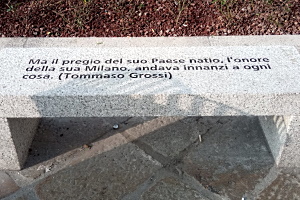 Questa e altre 3 panchine scritte sono state messe nella piazza a dicembre 2025, al termine dei lavori di risistemazione del selciato. |