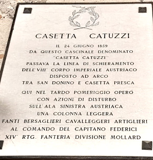 IL 24 GIUGNO 1859 DA QUESTO CASCINALE DENOMINATO "CASETTA CATUZZI" PASSAVA LA LINEA DI SCHIERAMENTO DELL'VIII° CORPO IMPERIALE AUSTRIACO DISPOSTO AD ARCO TRA SAN DONINO E CASETTA PRESCA