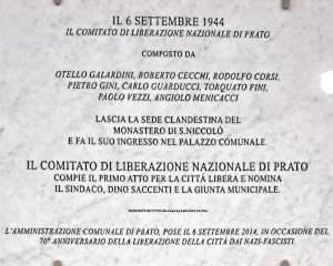 L'AMMINISTRAZIONE COMUNALE DI PRATO, POSE IL 6 SETTEMBE 2014, IN OCCASIONE DEL 70° ANNIVERSARIO DELLA LIBERAZIONE DELLA CITTĮ DAI NAZI-FASCISTI.