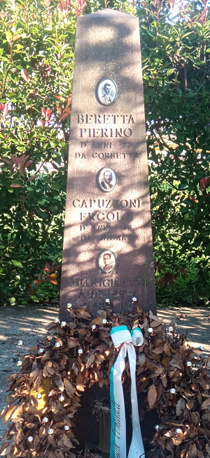 Capuzzoni, operaio, antifascista, era nato a Mezzate (Mi) nel 1897 e risiedeva a Milano; Quirighetti ("Guido"), nato a Lugano nel 1897 ma residente a Milano, faceva parte della 168^ brigata Garibaldi; tutti e tre in seguito a delazioni erano stati arrestati dai militi della Legione "Muti" e qui portati per la fucilazione, il 31/8/1944; stessa sorte ebbero