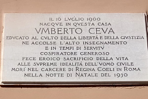Carlo Del Re) e accusato dell'attentato stragista di due anni prima alla Fiera Campionaria. Si suicidò nel carcere di Regina Coeli ingoiando frammenti di vetro. Poche ore prima di togliersi la vita scrisse alla moglie: "Santa Elena mia, posso dirti le circostanze che mi portano a compiere oggi un atto che da più di un mese ho deciso. Ho aspettato sino ad ora per essere ben certo che nulla mi facesse velo. Non posso dirti, perché equivarrebbe a rendere impossibile che ti consegnino queste mie ultime parole. Ho forse toccato inconsciamente mani impure e quello che ho fatto, non grave in sé, può far sorgere dei dubbi, e per difendermi dovrei accusare, senza un'ombra di prova, solo per un'ombra di prova, solo per poche parole, afferrate qua e là. Sono stato cieco e questo mi ha portato a dover dare a te, a tutti i miei cari adorati, questo dolore terribile. Io perdono con assoluta sincerità di cuore e tu fa lo stesso secondo la mia intenzione. Difendi la mia memoria se le circostanze lo richiederanno. Che i nostri figli portino ben alta la fronte, perché il loro padre muore con la coscienza tranquilla e senza aver macchiato il loro nome" (devo la citazione e altre integrazioni informative a Walter dalla Biblioteca di Rozzano). A Ceva era stato chiesto dai suoi compagni di preparare un ordigno per attentati dimostrativi ma, quando fece un test per saggiare l'efficacia dei suoi preparati, si accorse dell'enorme potere dirompente di quegli esplosivi e decise di neutralizzarli, gettandoli nelle acque del Brembo. Però nella lettera di addio sopra riportata non è categoricamente rifiutata la sua estraneità all'attentato, perché i poliziotti che lo interrogavano gli insinuarono abilmente il dubbio che altri di GL avessero comunque recuperato il materiale e portato a termine il massacro (20 morti e decine di feriti). Di qui il fatale tormento che lo portò al suicidio. A tutt'oggi non si hanno certezze definitive sulla