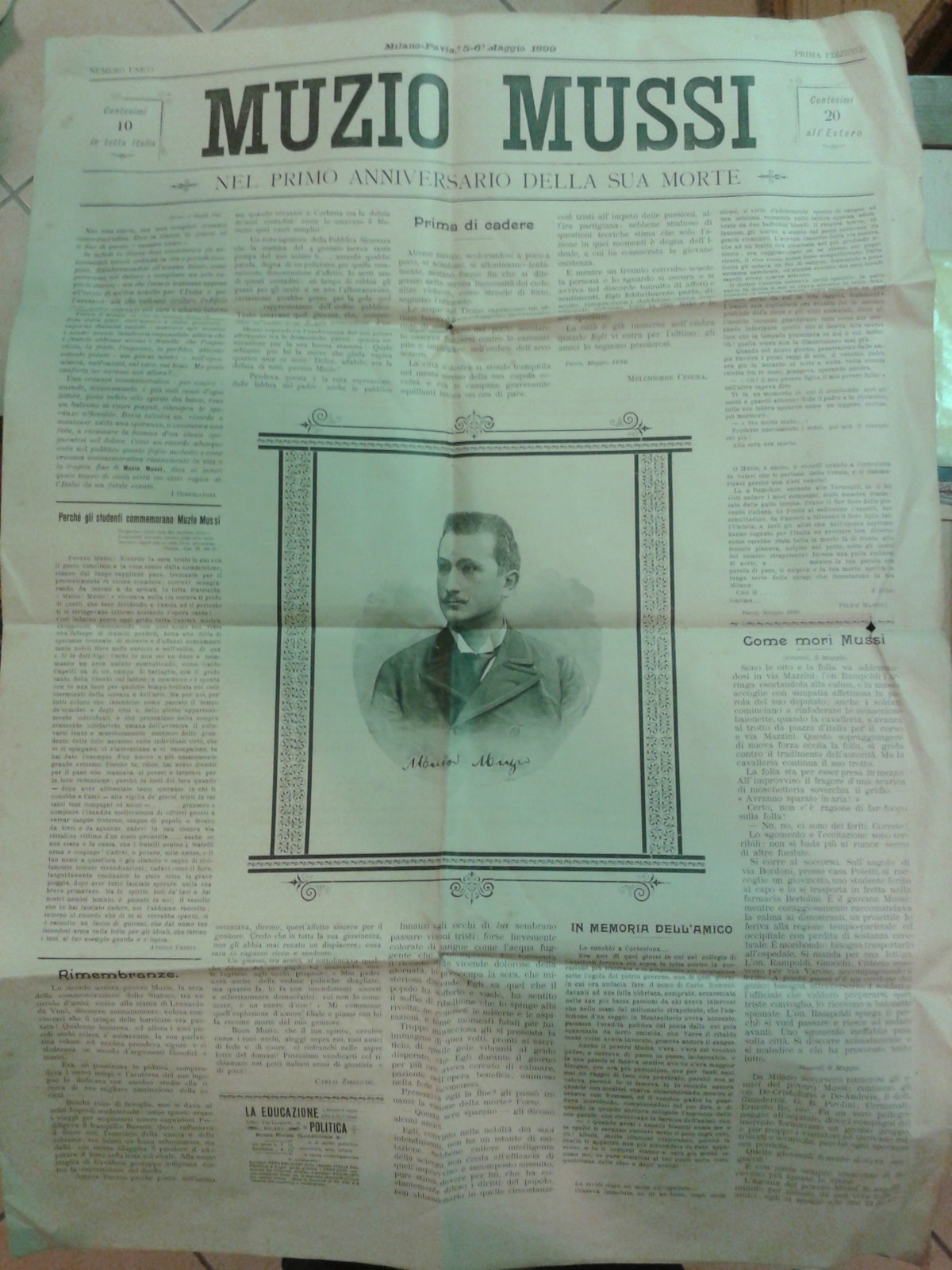 colpito dallo sparo di un carabiniere; morì poco dopo per la ferita. Questo episodio fu tra gli inneschi del malcontento che sfociò nelle manifestazioni di Milano represse poi dalle