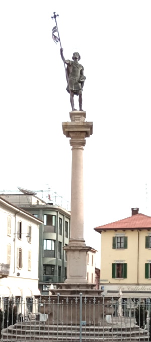 Il 1796 è l'anno in cui i soldati napoleonici trasformarono la colonna in albero della libertà; il 1807 l'anno in cui fu ricollocata la statua di S.Alessandro. Le altre righe di testo non sono leggibili.