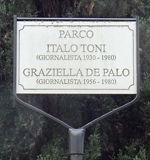 Italo Toni, nato a Sassoferrato il 31/1/1930, e Graziella De Palo, nata a Roma il 17/6/1956, erano giornalisti, interessati soprattutto alla situazione politico-militare nel Medio Oriente. Mentre in Libano cercavano di scoprire gli itinerari del traffico d'armi, il 2/9/1980 furono rapiti e di loro non si seppe pił nulla.