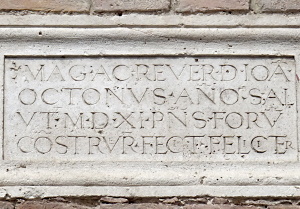 MAG. AC REVER. D. IOÂ. OCTONUS AÑO SAL UT. MDXI PÑS FORÛ CÔSTRUER. FECIT FELICITER