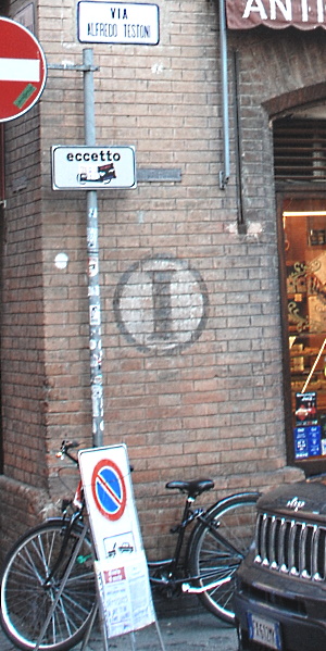 Questa scritta indicava l'ubicazione di un idrante; altre analoghe si trovano in via Castiglione (ang. via Cestello), via S.Vitale 23, via S.Stefano 43, piazza Maggiore 5 A, via Pelagi 35.