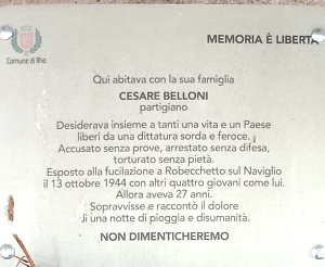 Visone" nell'estate 1944 ; egli aveva il comando del distaccamento di Rho. Assieme ad altri 4 fu arrestato il 13/10/1944, torturato, infine portato alla fucilazione. Sotto la scarica di mitra il compagno Alvaro Negri, colpito a morte cadde su di lui e lo riparò da altri proiettili; gettato con gli altri corpi nel Naviglio si riprese e riuscì a portarsi a riva più lontano. Sopravvisse, medicato da contadini e tenuto nascosto fino al termine della guerra.