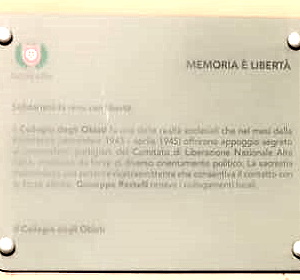Gli Oblati erano preti missionari, attivi nel santuario dell'Addolorata di Rho, legati al culto di S.Carlo Borromeo. Durante gli anni 1943-45 appoggiarono segretamente i comandanti del Comitato di Liberazione Nazionale Alta Italia, ospitando anche una ricetrasmittente in sagrestia, essenziale per i collegamenti con le forze Alleate e lo scambio di informazioni strategiche. |