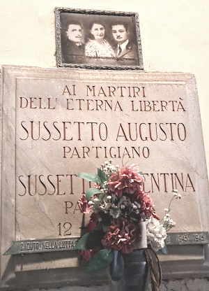 Erano di Chivasso; Clementina, nata il 26/3/1909, operaia, antifascista, aderì alla Resistenza militando come staffetta nella 21^ brigata SAP "Adalgerio Cagnoli" con il nome di battaglia "Leonessa"; la seguirono i fratelli Luigi Bonifacio, nato il 22/11/1917, ed Augusto, muratore, nato il 14/9/1921, arruolati nella brigata "Camporese" della Divisione GL. Clementina ed Augusto furono arrestati l'8/2/1945; i carcerieri li torturarono a lungo per estorcere informazioni sui loro compagni; il 12 febbraio li fucilarono ai murazzi del Po. La foto posta sopra la lapide ritrae i tre fratelli. |